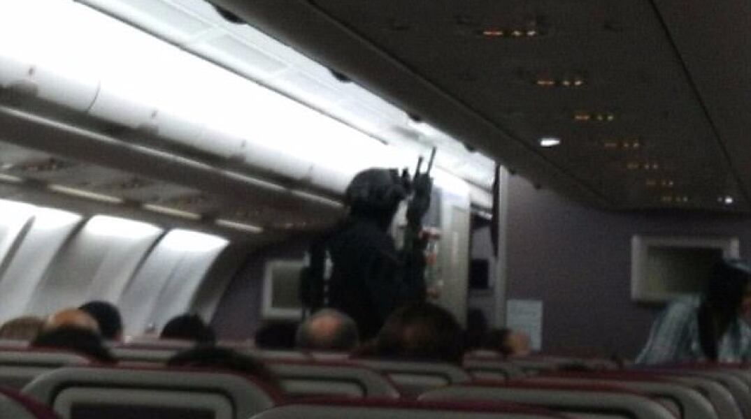 Τελικά, κάποιοι επιβάτες κινήθηκαν με ψυχραιμία και κατάφεραν να τον ακινητοποιήσουν στο πάτωμα.