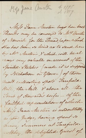 «Είναι πολύ ενδιαφέρον να έχουμε μια επιστολή της Τζέιν Όστεν όπου μιλά για το γράψιμο, για μυθιστορήματα, για τα μυθιστορήματα κάποιου άλλου, γιατί δεν το κάνει συχνά στα κείμενά της», εξήγησε ο Γκάμπριελ Χίτον, ο διευθυντής του τμήματος χειρογράφων και βιβλίων του οίκου Sotheby's.