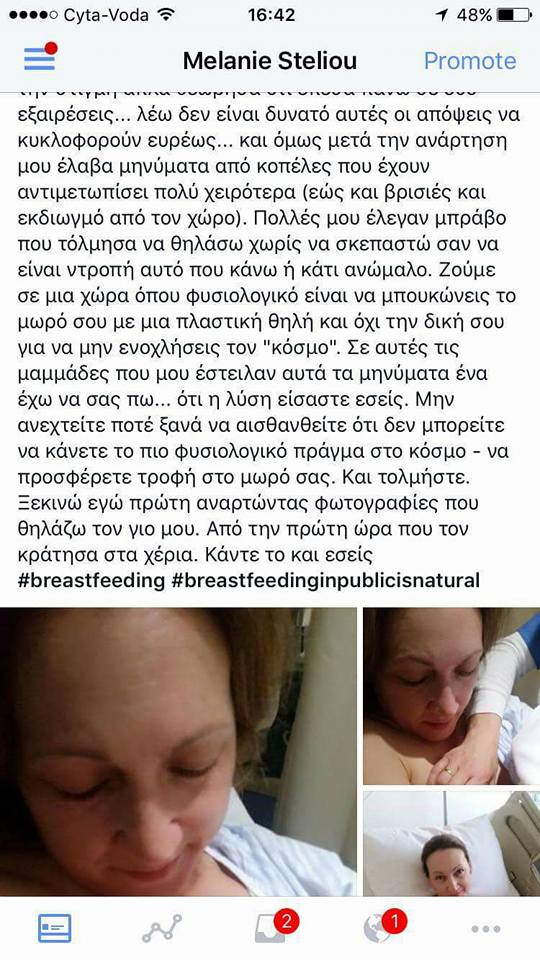Κύπρος: Χρήστες του Facebook κατήγγειλαν ηθοποιό για φωτογραφία που θήλαζε δημόσια το παιδί της