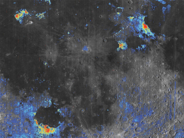 Με έντονο χρώμα οι περιοχές με αυξημένη περιεκτικότητα νερού στην επιφάνεια της Σελήνης