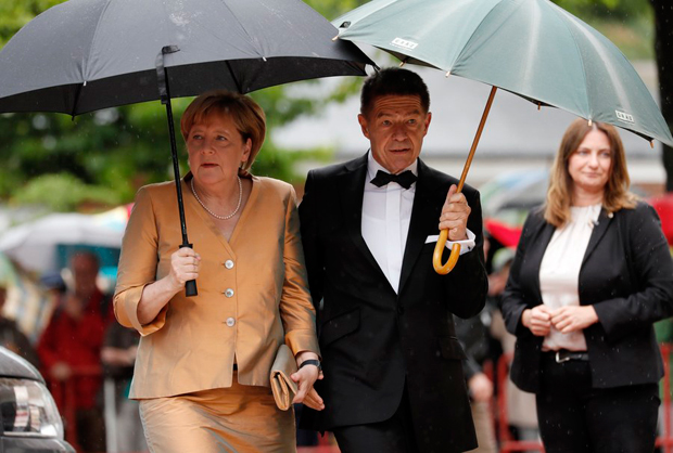 Βάζοντας λοιπόν χρυσά και σατέν, η Καγκελάριος περπάτησε την Τρίτη στο κόκκινο χαλί, στο ετήσιο Φεστιβάλ Όπερας του Μπαϊρόιτ, συνοδευόμενη από τον σύζυγό της. Η Μέρκελ συγκέντρωσε πάνω της όλα τα φλας των φωτογράφων, με την τουαλέτα της να κλέβει την παράσταση.