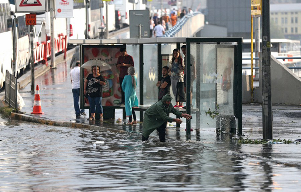 Χαλάζι σε μέγεθος... μπάλας του γκολφ και καταρρακτώδεις βροχές έπληξαν την Πέμπτη την Κωνσταντινούπολη. Για αρκετή ώρα η κυκλοφορία οχημάτων και πεζών σε μεγάλο τμήμα της πόλης ήταν αδύνατη.
