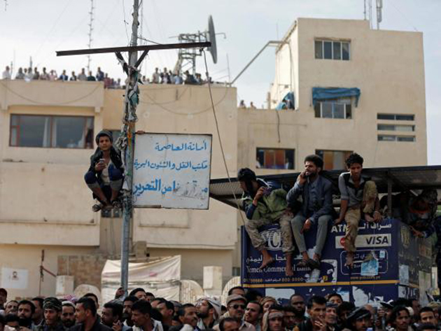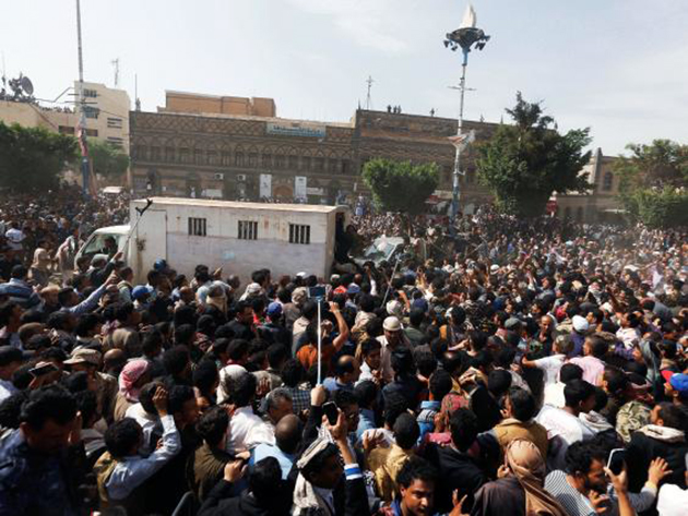 Πλήθος κόσμου στην Σαναά της Υεμένης έβγαλε τα κινητά και απαθανάτισε το τέλος του βιαστή