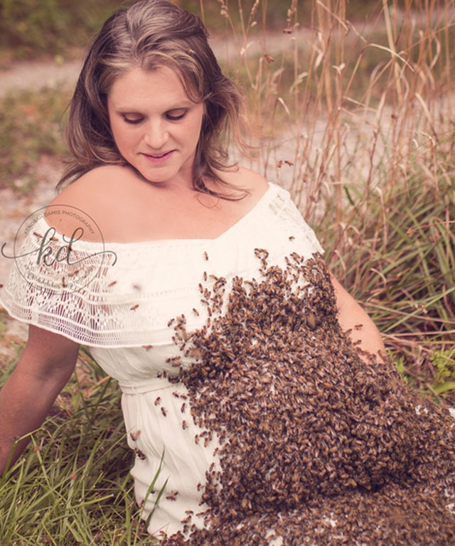 Θεωρώντας τα πουλιά και τις μέλισσες αναπόσπαστο στοιχείο της διαδικασίας αναγέννησης στη φύση, η Emily Mueller αποφάσισε ότι οπωσδήποτε αυτά τα πλάσματα θα έπρεπε να βρίσκονται σε μια φωτογραφία εγκυμοσύνης, οπότε προσκάλεσε ένα σμήνος μέλισσες στη δική της φωτογραφία.