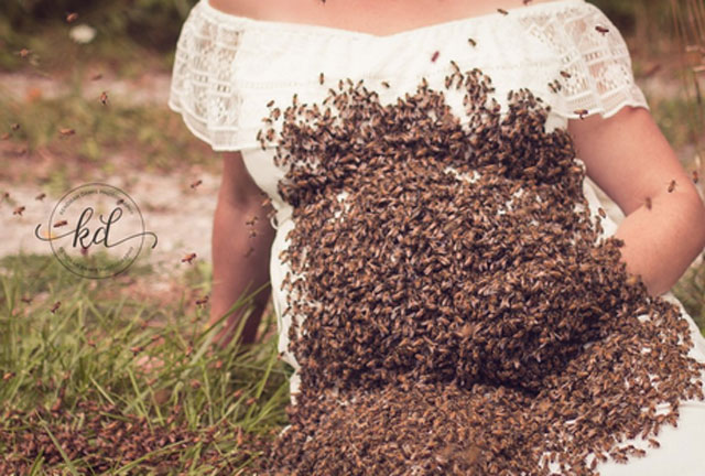Έγκυος ποζάρει με 20.000 χιλιάδες μέλισσες πάνω στο σώμα της (εικόνες)