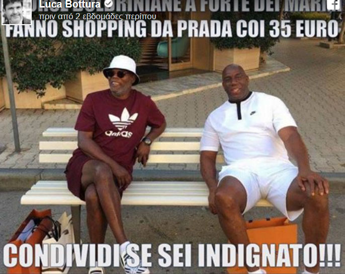 «Με τους πόρους της Boldrini ψωνίζουν στο Forte dei Marmi, Prada με τα δικά μας 35 ευρώ. Μοιραστείτε αυτή την φωτογραφία αν είστε έξαλλοι».