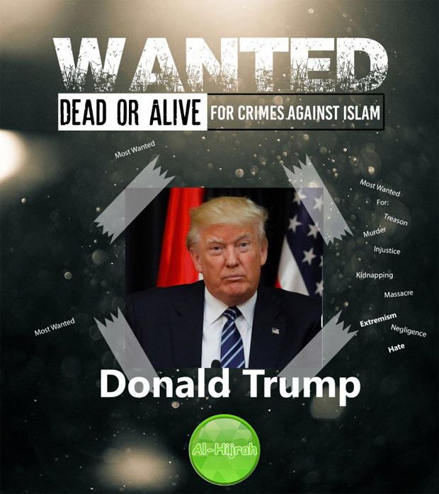 Η Αλ Κάιντα, πάντως, δεν ξεχνά τον Τραμπ, φροντίζοντας να τον... επικηρύξει μέσω διαδικτύου. Σύμφωνα με το Newsweek, η εξτρεμιστική οργάνωση ανέβασε σε προπαγανδιστικό ιστότοπο μια αφίσα του προέδρου των ΗΠΑ με τη φράση: «Καταζητείται. Νεκρός ή ζωντανός για εγκλήματα κατά του Ισλάμ».