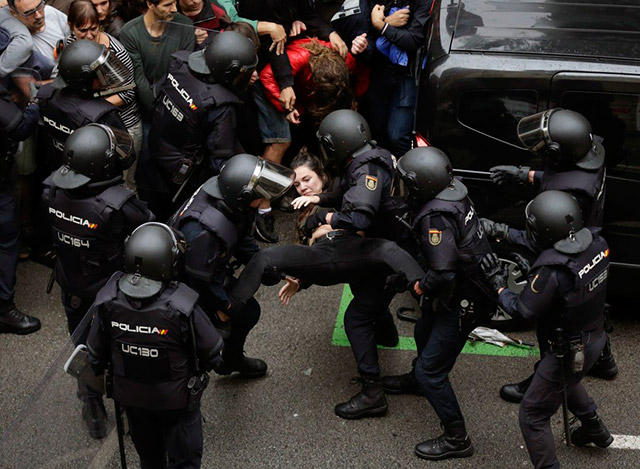 Οι αστυνομικοί κατάσχουν από τα εκλογικά κέντρα κάλπες και ψηφοδέλτια. Ο Ισπανός υπουργός Εσωτερικών, Χουάν Ιγκνάσιο Ζόιδο δημοσίευσε στο Twitter βίντεο με ανάλογη επιχείρηση της αστυνομίας