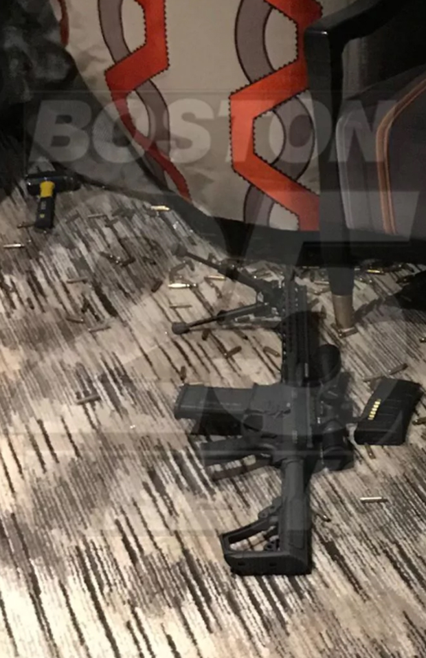 Τα επίλεκτα μέλη της SWAT που «μπούκαραν» στο δωμάτιο, εντόπισαν σε διάφορα σημεία 23 όπλα. Ο δράστης τα είχε μεταφέρει εκεί τις προηγούμενες ημέρες, χρησιμοποιώντας 10 βαλίτσες. Οι δυνάμεις ασφαλείας χρειάστηκαν 70 λεπτά για να φθάσουν μέχρι την πόρτα του και να ανακαλύψουν ότι είχε θέσει τέρμα στη ζωή του. Ο Στίβεν Πάντοκ είχε νοικιάσει το δωμάτιο την Πέμπτη 28 Σεπτεμβρίου.