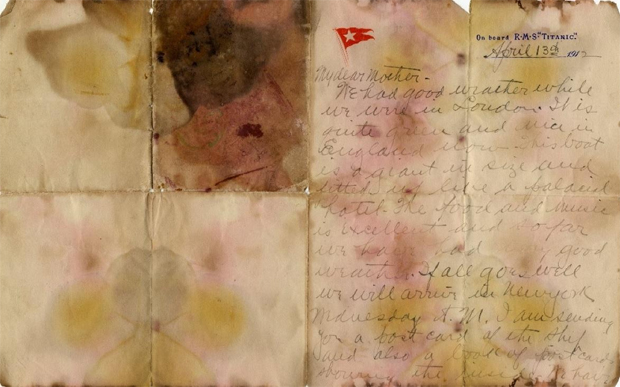 Μια χειρόγραφη επιστολή, που βρέθηκε πάνω στη σορό ενός άνδρα ο οποίος πνίγηκε στο ναυάγιο του Τιτανικού, δημοπρατείται στο Ντέβιζις της νότιας Αγγλίας. Εκτιμάται ότι η τιμή πώληση θα αγγίξει (αν όχι θα ξεπεράσει) τις 80.000 βρετανικές λίρες.