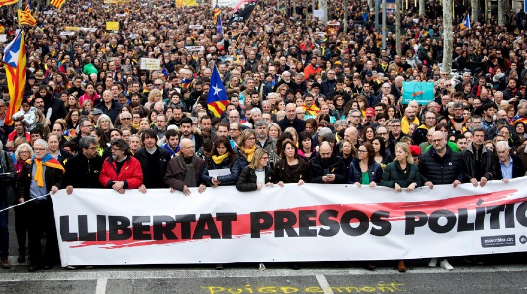 Ανταποκρινόμενοι στο κάλεσμα της αυτονομιστικής οργάνωσης Επιτροπές Προάσπισης της Δημοκρατίας, οι διαδηλωτές συγκεντρώθηκαν στη Ράμπλα, την κεντρική λεωφόρο της Βαρκελώνης, φωνάζοντας συνθήματα όπως "Ελευθερία στους πολιτικούς κρατούμενους" και "Ο Πουτζδεμόν είναι ο πρόεδρός μας".