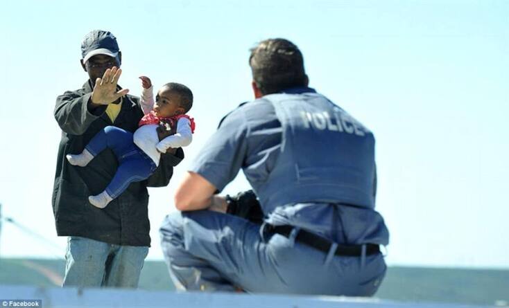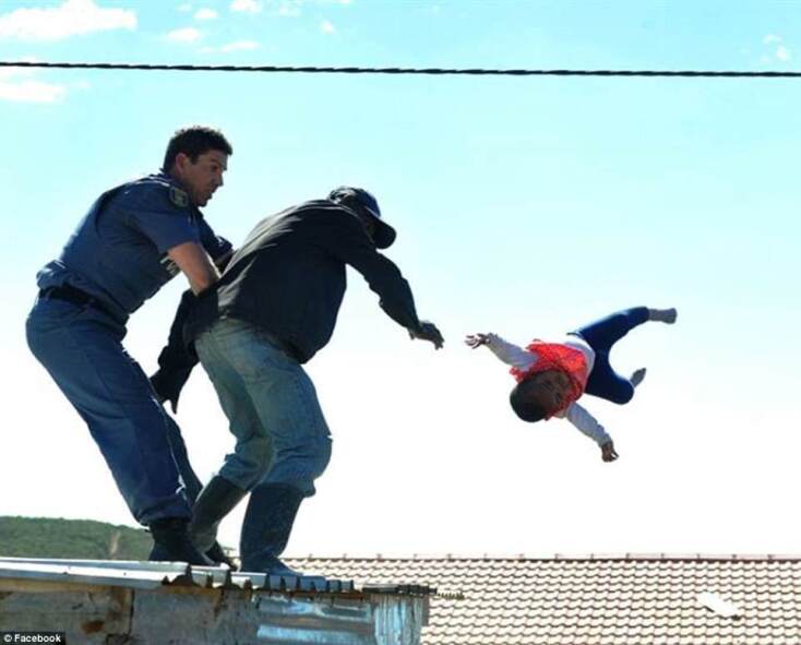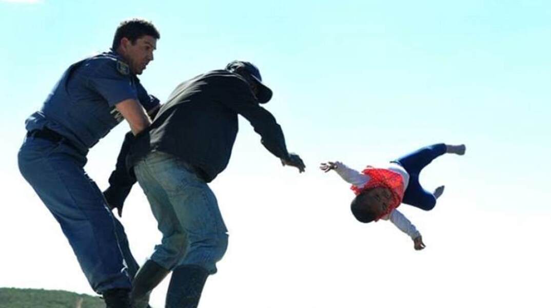 Τη σοκαριστική στιγμή που ένας πατέρας πέταξε την μόλις ενός έτους κόρη του από την οροφή του σπιτιού τους στην προσπάθειά του να μην κατεδαφιστεί το σπίτι του που είχε χτιστεί παράνομα, κατέγραψε ο φακός στην πόλη Kwadwesi της Νότιας Αφρικής.
