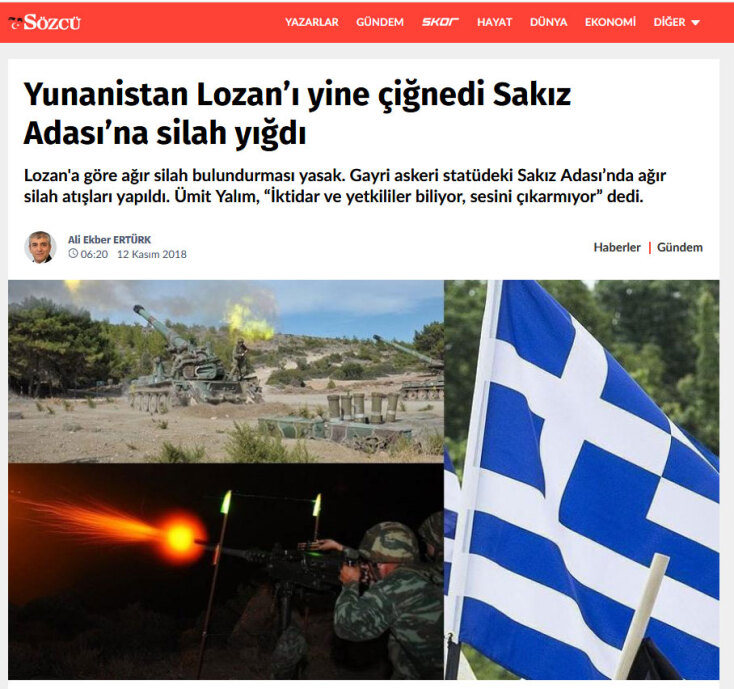 Σε νέο προκλητικό δημοσίευμα εναντίον της Ελλάδας προχώρησε η εφημερίδα "Sozcu".