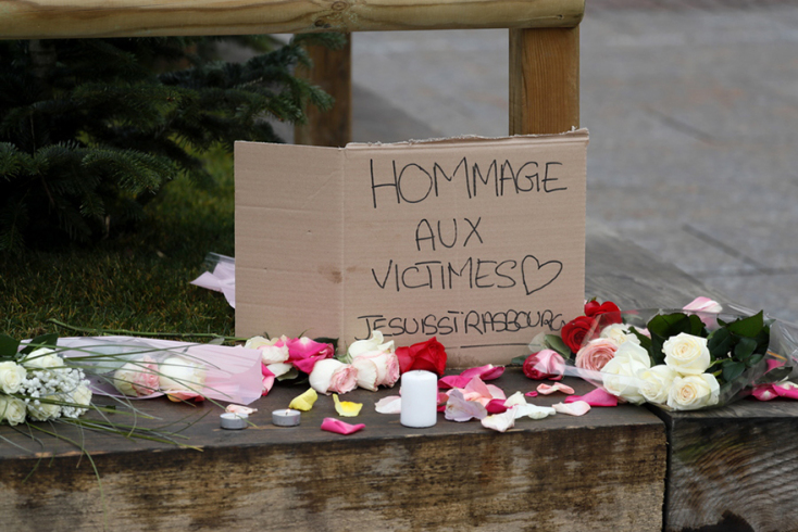 Στην οδό Rue Des Grandes Arcades κηλίδες αίματος διακρίνονται στο οδόστρωμα, σε έναν από τους δρόμους όπου ορισμένα από τα θύματα δέχθηκαν τους πυροβολισμούς. Στην πλατεία Kleber, στην καρδιά της πόλης, πολίτες αφήνουν λουλούδια μπροστά από ένα χριστουγεννιάτικο δέντρο, στη μνήμη των νεκρών.