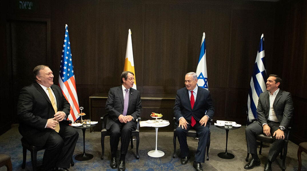 Αναλυτικά η Κοινή Δήλωση Κύπρου - Ελλάδας - Ισραήλ - ΗΠΑ, μετά την 6η τριμερή Σύνοδο Κορυφής με τη συμμετοχή του υπουργού Εξωτερικών των ΗΠΑ, στην Ιερουσαλήμ: «Οι Κυβερνήσεις των Ηνωμένων Πολιτειών, του κράτους του Ισραήλ, της Ελληνικής Δημοκρατίας και της Κυπριακής Δημοκρατίας συναντήθηκαν σήμερα στην Ιερουσαλήμ για να διαβεβαιώσουν την κοινή τους δέσμευση να προωθήσουν την ειρήνη, τη σταθερότητα, την ασφάλεια και την ευημερία στην περιοχή της Ανατολικής Μεσογείου. Ο Υπουργός Εξωτερικών Πομπέο υπογράμμισε ότι οι ΗΠΑ στηρίζουν τον τριμερή μηχανισμό που δημιούργησε το Ισραήλ, η Ελλάδα και η Κύπρος, σημειώνοντας τη σημασία της αυξανόμενης συνεργασίας. Οι ηγέτες συμφώνησαν να αυξήσουν την περιφερειακή συνεργασία, να στηρίξουν την ενεργειακή ανεξαρτησία και ασφάλεια, και να αμυνθούν ενάντια σε εξωτερικές κακές επιρροές στην Ανατολική Μεσόγειο και την ευρύτερη Μέση Ανατολή. Χαιρέτισαν τις πρόσφατες ανακαλύψεις φυσικού αερίου στην Ανατολική Μεσόγειο και τις προοπτικές τους στη συμβολή στην ενεργειακή ασφάλεια και τις εναλλακτικές πηγές».
