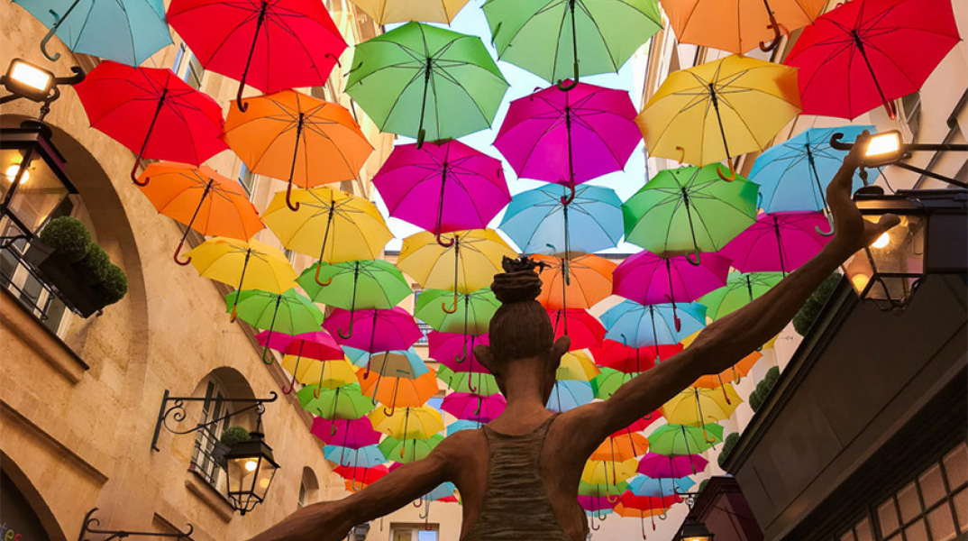 Οι καλλιτέχνες της πορτογαλικής ομάδας Sextafeira Producoes, με 800 ζωηρόχρωμες ομπρέλες εκτόξευσαν σε καινούργια ύψη την τέχνη του δρόμου. Όταν οι επισκέπτες εισέρχονται στο Le Village Royal, θαμπώνονται από ένα μαγικό, πολύχρωμο «στέγαστρο» ανοιχτών ομπρελών. Καθώς φωτίζει ο ήλιος, το πέρασμα γίνεται ένα εντυπωσιακό κομμάτι του Παραδείσου.