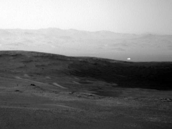 Το ρόβερ Curiosity της Αμερικανικής Διαστημικής Υπηρεσίας (NASA) τράβηξε μια φωτογραφία στον Άρη, όπου φαίνεται μια μυστηριώδης λάμψη σε ένα μακρινό λόφο. Στην ασπρόμαυρη φωτογραφία, μπροστά από ένα βραχώδες τοπίο, μια μακριά και ακανόνιστη λευκή λάμψη φαίνεται να περνάει από πάνω.