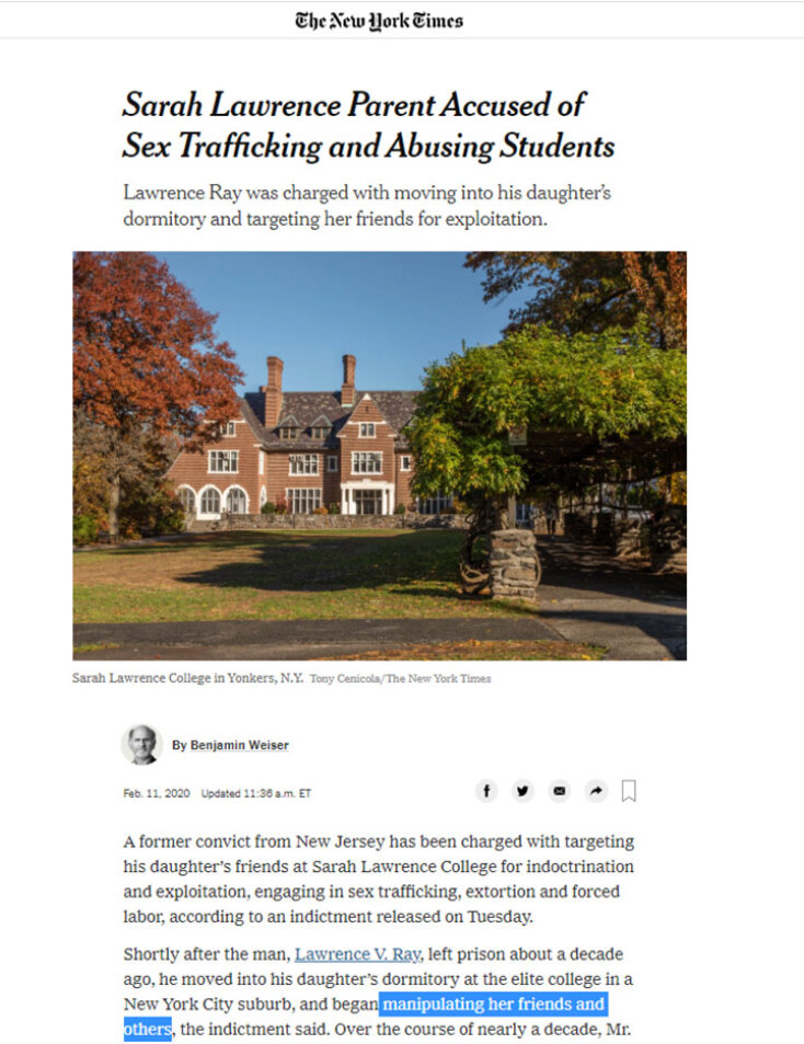 Τι έκανε; Έβγαλε 1 εκατ. δολάρια από τις κολλητές της κόρης του. Όπως αναφέρει δικαστική πηγή που επικαλείται η αμερικανική εφημερίδα «New York Times» o 60χρονος πλέον Ray υπέβαλε για χρόνια «τα θύματά του σε σεξουαλική και ψυχολογική χειραγώγηση, καθώς και σωματική κακοποίηση». Συνελήφθη το πρωί της Τρίτης.