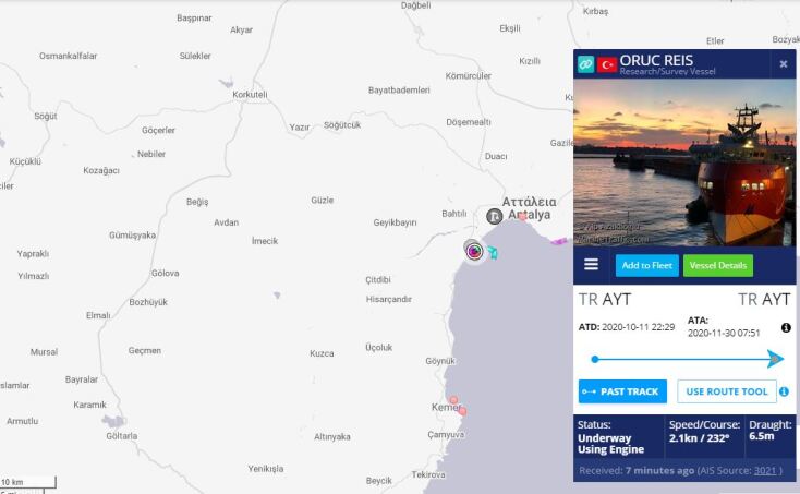 Στο λιμάνι της Αττάλειας επέστρεψε τα ξημερώματα της Δευτέρας (30/11) το ερευνητικό σκάφος της Τουρκίας, Oruc Reis, από περίπου ενάμιση μήνα παράνομων ερευνών στην Ανατολική Μεσόγειο.