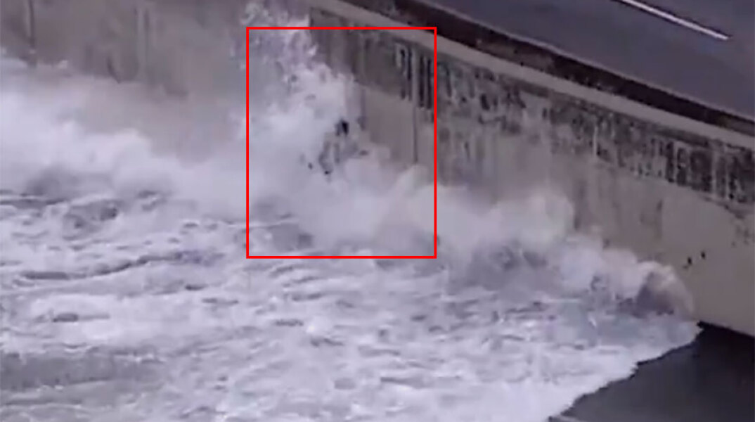 Καρέ καρέ η στιγμή που μεγάλο κύμα παρασύρει ποδηλάτη στο Σικάγο των ΗΠΑ εν μέσω κακοκαιρίας - Δείτε εικόνες από το απίστευτο συμβάν.