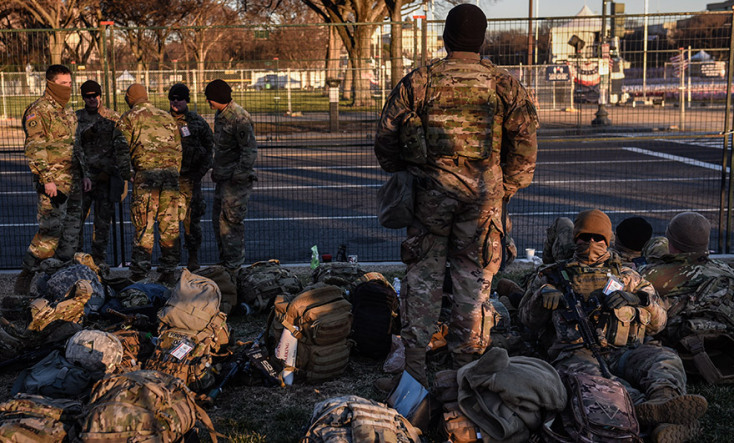 Περισσότερα από 20.000 μέλη της εθνοφρουράς περιπολούν ένοπλα. Συρματοπλέγματα έχουν υψωθεί και τσιμεντένια μπλοκ έχουν στηθεί για να προστατεύσουν μνημεία, όπως ο Λευκός Οίκος και το Καπιτώλιο, ή για να αποκλείσουν ολόκληρους (οδικούς) άξονες.