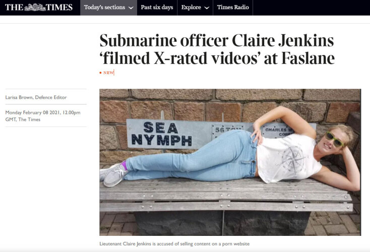 Σύμφωνα με δημοσίευμα στους thetimes.co.cuk, η γυναίκα υποπλοίαρχος γύριζε πορνό με το ψευδώνυμο «Κάλι Τέιλορ» (Cally Taylor) στις εγκαταστάσεις της ναυτικής βάσης στο Φάσλεϊν (Faslane) κοντά στην πρωτεύουσα της Σκωτίας, Γλασκώβη. Στη συνέχεια πωλούσε τα ερωτικά βίντεο σε ιστοσελίδα ενηλίκων. Η 29χρονη αξιωματικός του Βασιλικού Ναυτικού της Μεγάλης Βρετανίας πιάστηκε επ' αυτοφώρω την ώρα της ερωτικής πράξης. Ο εραστής της, Λίαμ Ντόντινγκτον, είναι επίσης μέλος του Βασιλικού Πολεμικού Ναυτικού.