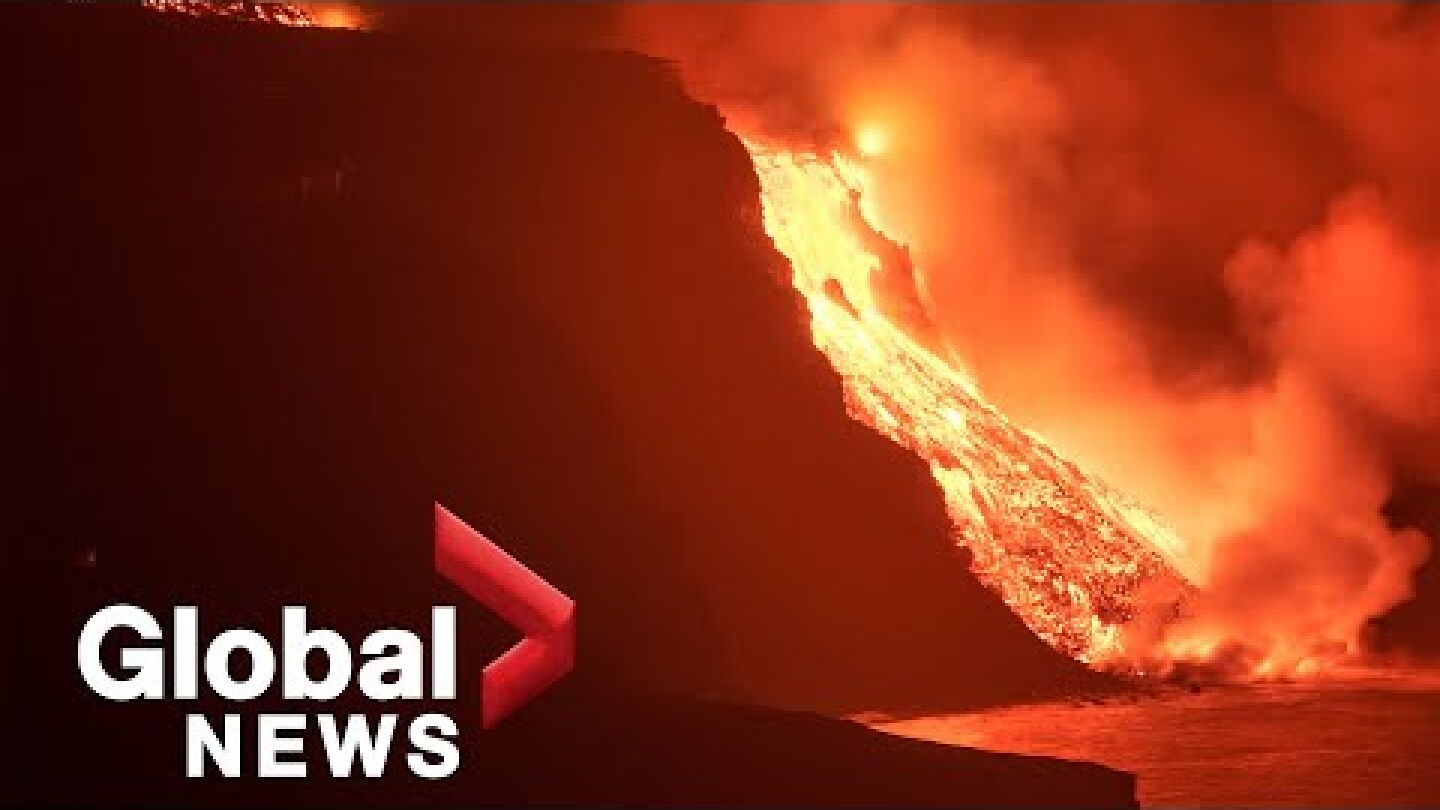 La Palma volcano: Video captures moment lava rocks fall from cliff to reach Atlantic Ocean