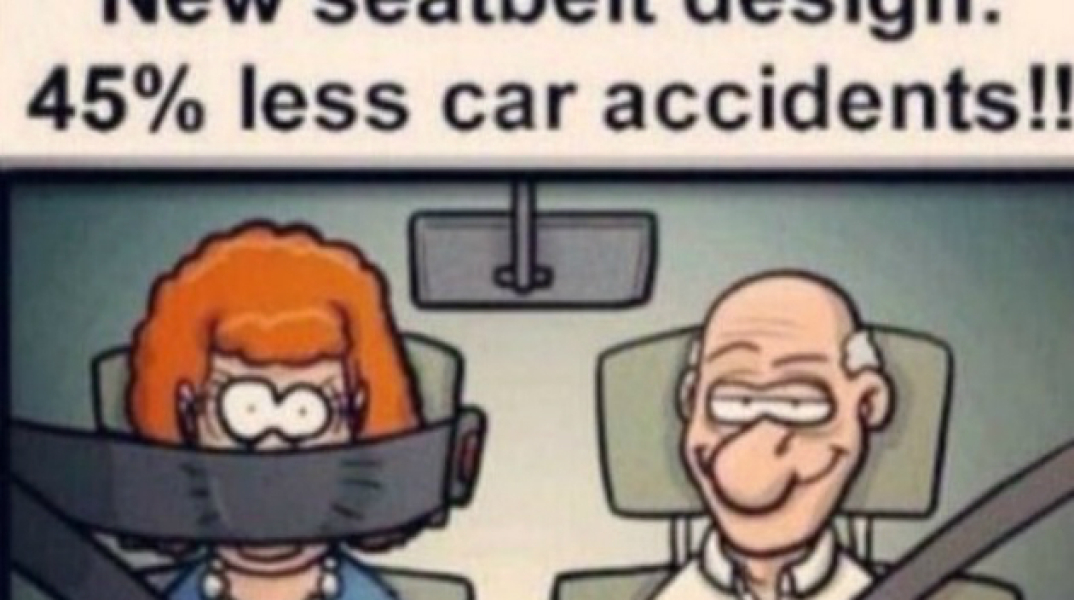 Οργανώσεις από όλο τον κόσμο αλλά και χρήστες των μέσων κοινωνικής δικτύωσης αντέδρασαν έντονα όταν είδαν το σκίτσο που ανέβασε η αστυνομία των Δυτικών Μίντλαντς στη Μεγάλη Βρετανία. Πρόκειται για μια νέα ζώνη ασφαλείας που φιμώνει το στόμα της συζύγου και μειώνει κατά 45% τα ατυχήματα στο δρόμο. Ένας αστυνομικός σχολίασε επίσης: «Ο σχεδιαστής της ζώνης κέρδισε επίσης βραβείο καθώς το σχέδιο του συμβάλλει στη μείωση της ηχορύπανσης. # Θέλω κι εγώ μία». Μετά τη διεθνή κατακραυγή η αστυνομία ζήτησε επισήμως συγγνώμη και διέγραψε το tweet.