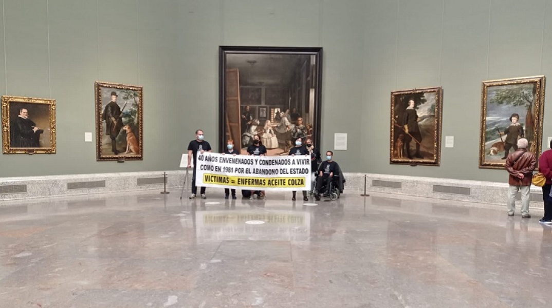 Επιζώντες από τη μαζική δηλητηρίαση πριν από τέσσερις δεκαετίες κατέλαβαν σήμερα, 19 Οκτωβρίου, για μερικές ώρες το μουσείο του Πράδο στη Μαδρίτη, απειλώντας να αυτοκτονήσουν αν δεν ικανοποιούνταν τα αιτήματά τους για βοήθεια και δημοσιότητα.