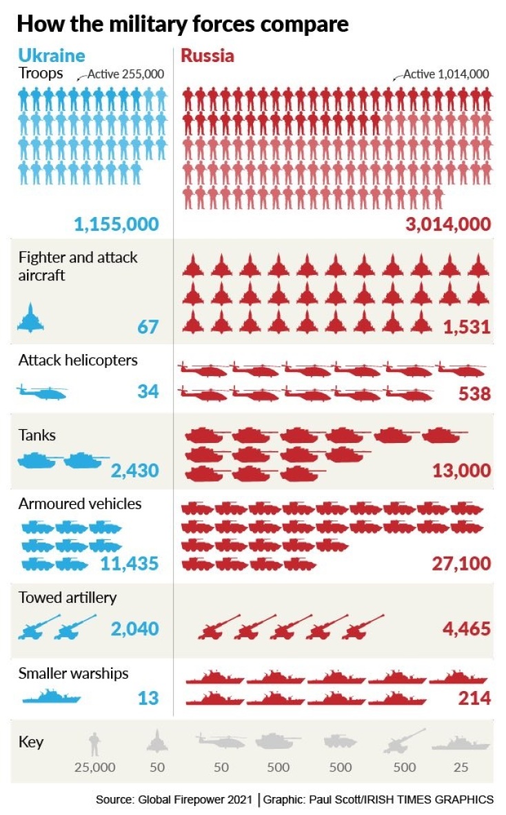 Με τις χώρες του ΝΑΤΟ να στέλνουν πλοία και μαχητικά αεροσκάφη για να ενισχύσουν την άμυνά τους στην ανατολική Ευρώπη απέναντι στις στρατιωτικές δραστηριότητες της Ρωσίας και τη Μόσχα να έχει ήδη αναπτύξει περισσότερους από 106.000 στρατιώτες κοντά στα σύνορά της με την Ουκρανία τους τελευταίους μήνες, πυροδοτώντας φόβους για νέα εισβολή στη χώρα, ενδιαφέρον αποκτούν οι δυνάμεις ισχύος των δυο δυνάμει αντιμαχόμενων πλευρών.