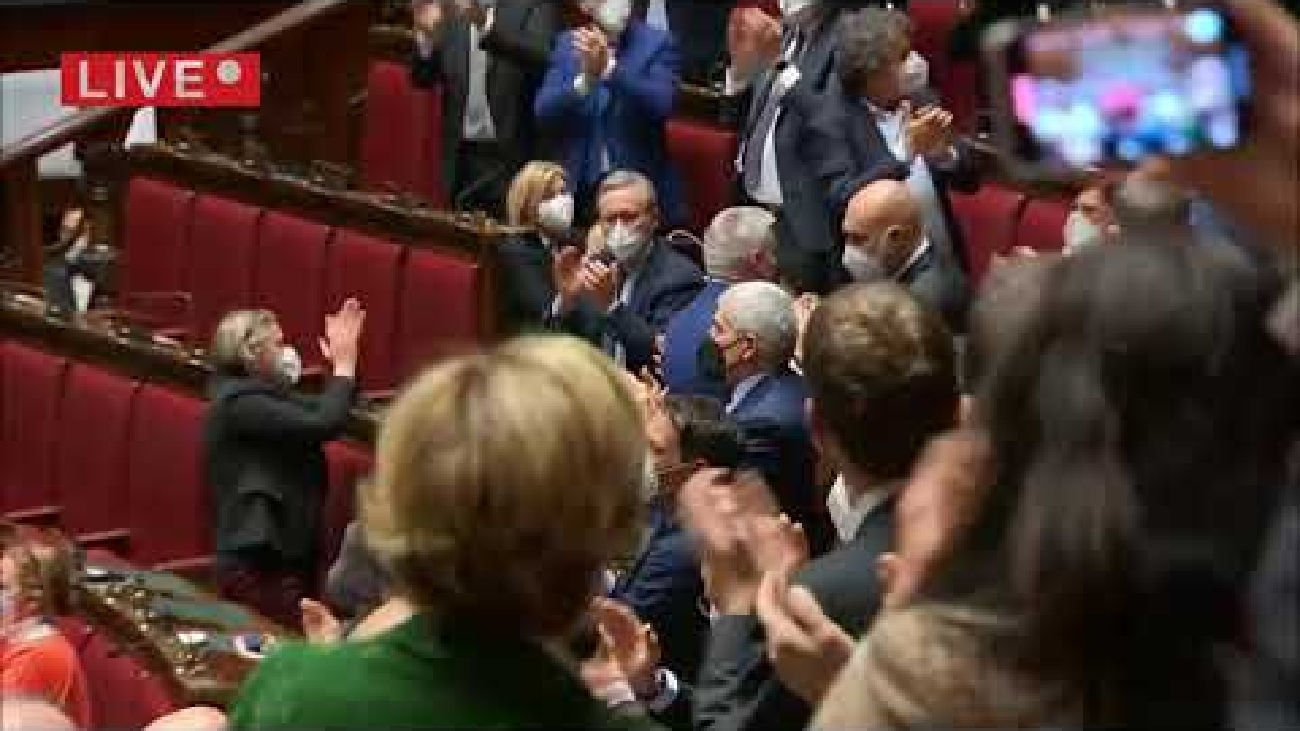 Στην αίθουσα της Βουλής, όταν η υποψηφιότητα του πρόεδρου Ματαρέλα εξασφάλισε και ξεπέρασε το 50% συν μια ψήφο, τα μέλη του κοινοβουλίου σηκώθηκαν όρθια και άρχισαν να χειροκροτούν, όπως αναφέρθηκε νωρίτερα. Το παρατεταμένο αυτό χειροκρότημα διήρκεσε τέσσερα λεπτά.