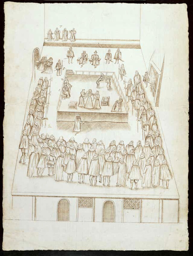 Ωστόσο, η έκθεση προσπαθεί να αναδείξει και το σκοτεινό παρασκήνιο της ιστορίας: Από τη μια, υπάρχουν τα ιστορικά γεγονότα – οι καταστροφικοί γάμοι της Μαρίας, η ήττα της, η φυγή στην Αγγλία, η φυλάκισή της και οι απεγνωσμένες προσπάθειες να προσφύγει στην Ελισάβετ. Κι από την άλλη, βρίσκονται αυτοί που κινούν τα νήματα και καθοδηγούν τις εξελίξεις πίσω από τη σκηνή. Ο Γουίλιαμ Σεσίλ και ο Φράνσις Ουάλσινγκχαμ, γραμματείς της Ελισάβετ, χειραγωγούν και στρέφουν τη μια εναντίον της άλλης, παρακολουθούν την αλληλογραφία της έκπτωτης βασίλισσας των Σκώτων, συλλέγουν ενοχοποιητικά στοιχεία εναντίον της μέχρις ότου καταφέρουν να κλείσουν σφιχτά τον κλοιό και να την παγιδεύσουν, φροντίζοντας ωστόσο να σβήσουν κάθε ίχνος που θα μπορούσε να ενοχοποιήσει την αντίπαλό της, Ελισάβετ, ως συνένοχο στην καλοδουλεμένη συνωμοσία. Ουσιαστικά, παρακολουθούμε το χρονικό της εξόντωσης μιας βασίλισσας που ολοκληρώνεται με τον αποκεφαλισμό της στις 8 Φεβρουαρίου 1587.