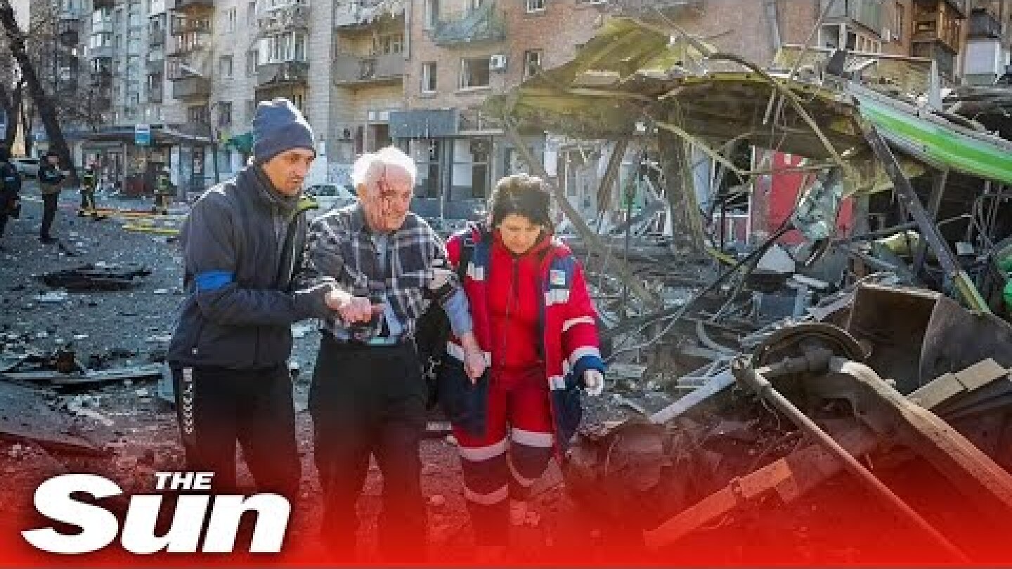 Βίντεο με τη διάσωση σε πολυκατοικία στο Κίεβο, όπου πυροσβέστες βγάζουν τραυματίες από το φλεγόμενο κτίριο μετά τον βομβαρδισμό από τη Ρωσία.
