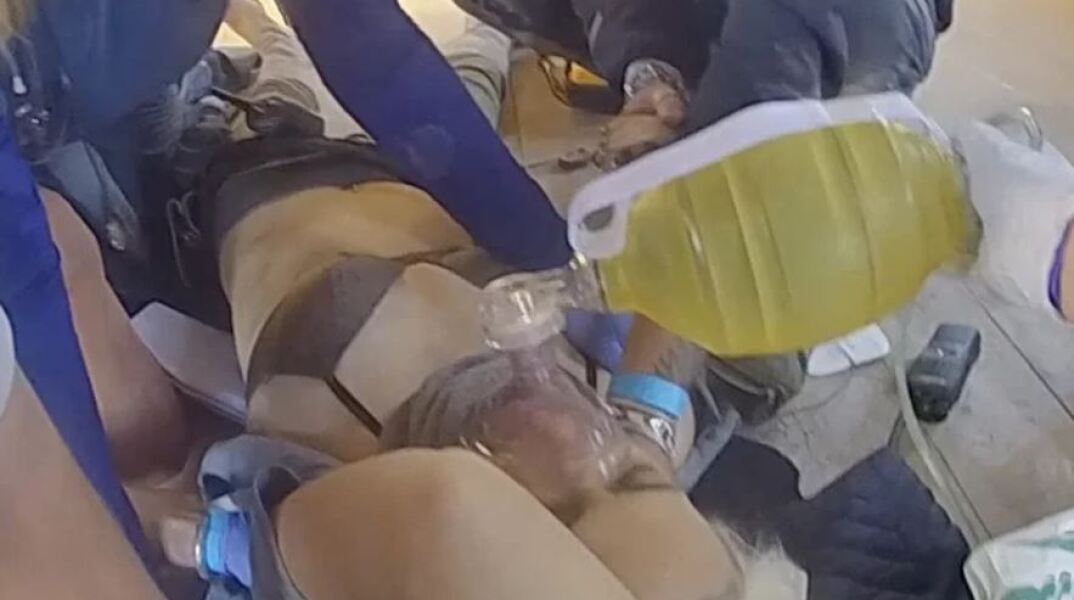 Σε όλη τη διάρκεια του βίντεο, η 42χρονη φαίνεται αναίσθητη στο πάτωμα του σκηνικού εκκλησίας που είχε στηθεί για τις ανάγκες της ταινίας «Rust», καθώς οι διασώστες προσπαθούν να τη σώσουν.