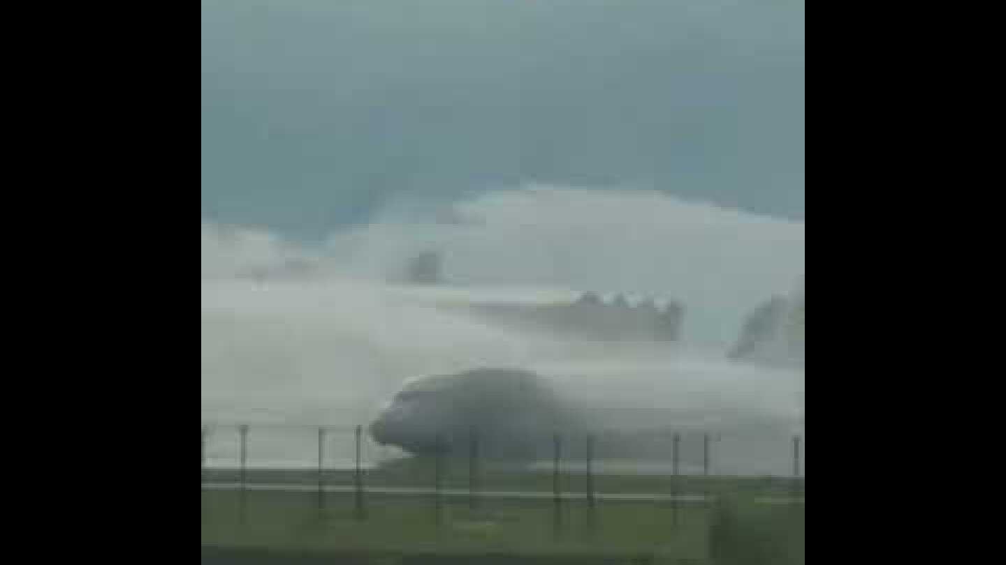 Βίντεο που μεταδόθηκε από το δημόσιο τηλεοπτικό δίκτυο CCTV εικονίζει αεροσκάφος στον διάδρομο φλεγόμενο στη μια του πλευρά, καθώς πυκνή στήλη μαύρου καπνού υψώνεται στον ουρανό.