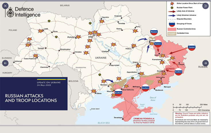Η ρωσική εισβολή στην Ουκρανία ξεκίνησε στις 24 Φεβρουαρίου με εντολή του Βλαντίμιρ Πούτιν. Μετά την αποτυχημένη απόπειρα της Ρωσίας να επιχειρήσει γενική επίθεση στο Κίεβο και έχοντας ισοπεδώσει γειτονικές πόλεις και χωριά, οι μάχες επικεντρώθηκαν στην Ανατολική Ουκρανία και τα νότια της χώρας. Πλέον, σφοδρές μάχες διεξάγονται στο Ντονμπάς, όπου βρίσκονται οι περιοχές Ντονέτσκ και Λουχάνσκ, τις οποίες η Ρωσία έχει αναγνωρίσει.