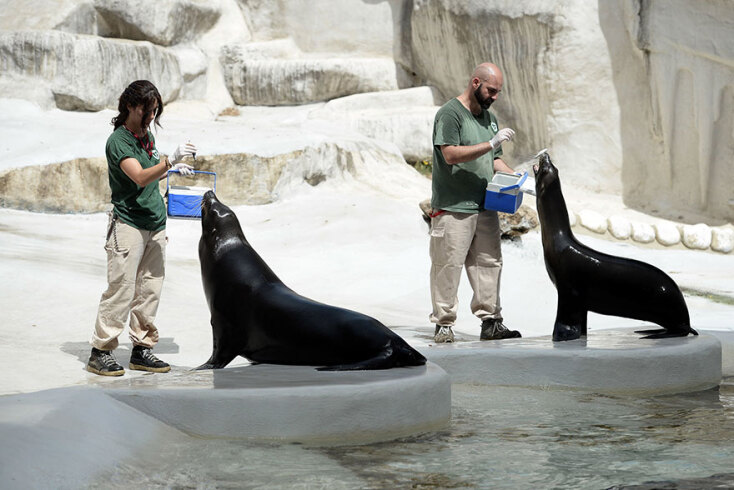 Στη Ρώμη ο καύσωνας δοκιμάζει τις αντοχές των άγριων ζώων στον Ζωολογικό Κήπο της ιταλικής πρωτεύουσας. Προκειμένου να τα βοηθήσουν να δροσιστούν, οι εργαζόμενοι που φροντίζουν τα ζώα τούς έδωσαν παγωτό κρέας, παγωτό ψάρι ή παγωτό από δημητριακά.