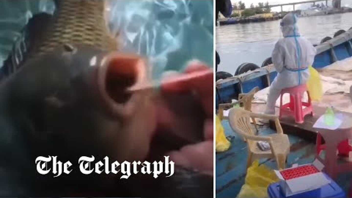 Η Κίνα έχει βρεθεί στο επίκεντρο της πανδημίας κορωνοϊού, καθώς οι κινεζικές αρχές εφάρμοσαν σκληρά lockdown στο πλαίσιο της αμφιλεγόμενης πολιτικής «zero covid». Η βρετανική εφημερίδα «Telegraph» δημοσίευσε βίντεο που δείχνει υγειονομικούς με προστατευτικές στολές να κάνουν σε ψάρια και γαρίδες δειγματοληπτικά τεστ για κορωνοϊό.