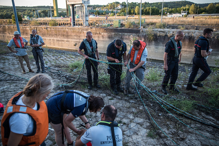 Le #Beluga est dans un filet que les pompiers déplacent. pic.twitter.com/HlGBwpd9of