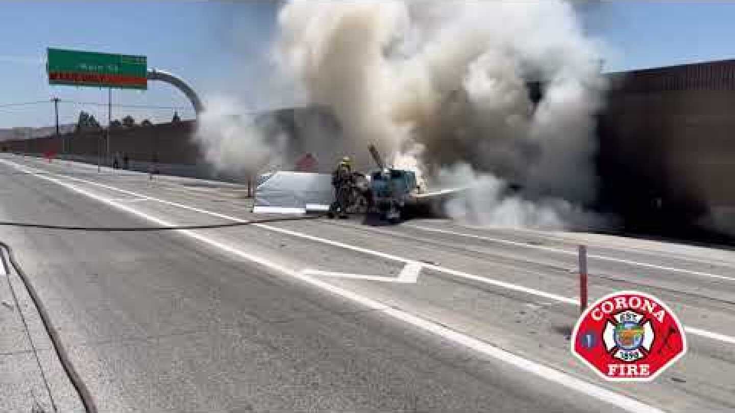 Μέχρι να τεθεί υπό έλεγχο η φωτιά, να απομακρυνθεί το κατεστραμμένο αεροπλάνο και να καθαριστεί το οδόστρωμα, ο αυτοκινητόδρομος στην Καλιφόρνια παρέμεινε κλειστός για αρκετές ώρες, με αποτέλεσμα τη μεγάλη ταλαιπωρία των οδηγών.