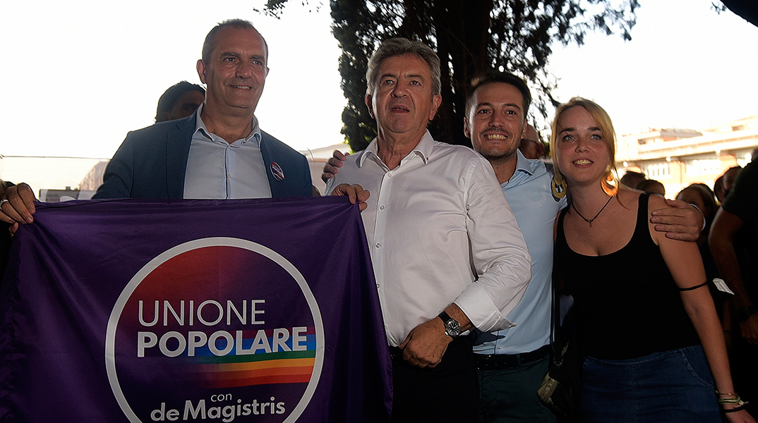 Ο Ζαν-Λυκ Μελανσόν έχει πολλά κοινά σημεία με την Τζόρτζια Μελόνι των «Αδελφών της Ιταλίας», η οποία, σύμφωνα με τις προβλέψεις, θα είναι η επόμενη πρωθυπουργός της Ιταλίας. Αλλά βεβαίως, ο Μελανσόν, που μετέβη την περασμένη εβδομάδα στην ιταλική πρωτεύουσα, δεν στηρίζει την υποψήφια του εθνικιστικού κόμματος, αλλά την αριστερά της Λαϊκής Ένωσης η οποία βρίσκεται στον πάτο των δημοσκοπήσεων. «Δεν μπορούσα να μείνω στο σπιτάκι μου ενώ εσείς αγωνίζεστε εναντίον των φασιστών» δήλωσε ο επικεφαλής της Ανυπότακτης Γαλλίας στον Luigi de Magistris, τον επικεφαλής της Democrazia e Autonomia που συμμετέχει στον συνασπισμό Unione Popolare.