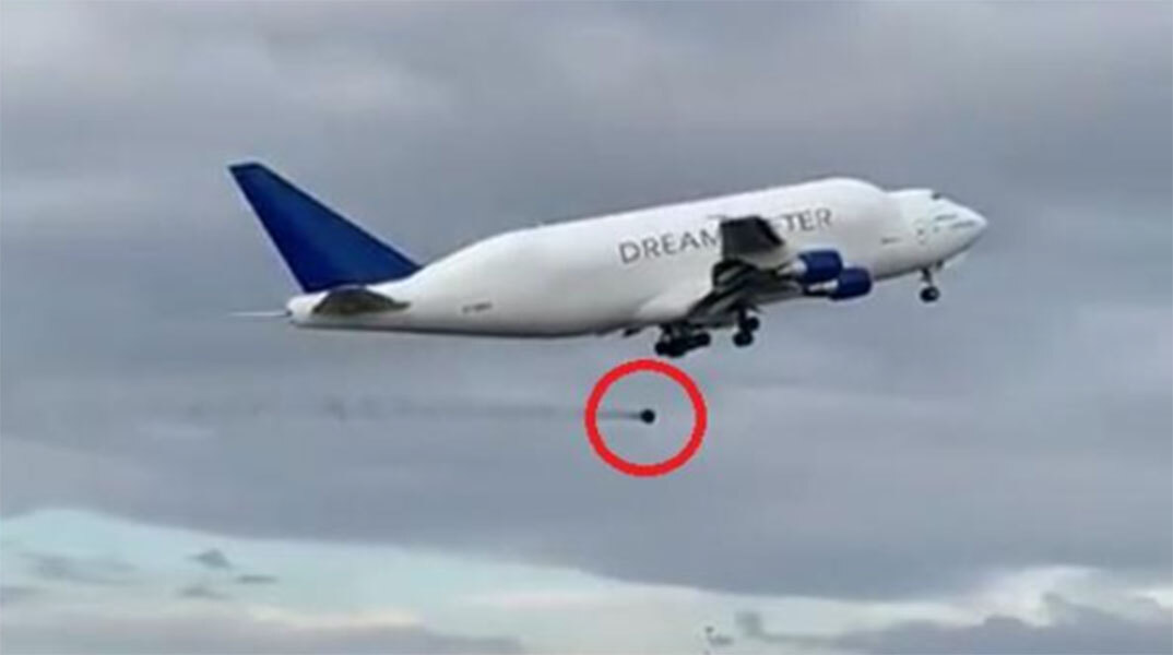 Βίντεο που κάνει τον γύρο του διαδικτύου καταγράφει τη στιγμή που ένα Boeing 747 Dreamlifter χάνει έναν από τους τροχούς του λίγα λεπτά μετά την απογείωση.