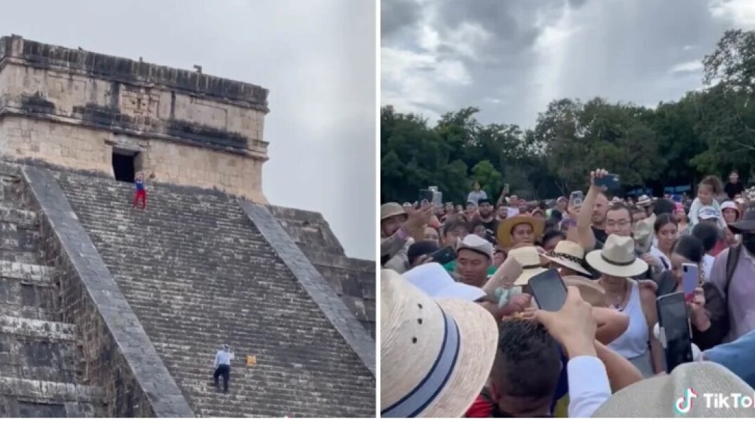 Την οργή κατοίκων και τουριστών στο Μεξικό προκάλεσε η απόφαση μιας τουρίστριας να σκαρφαλώσει στην Πυραμίδα των Μάγια στην Τσίτσεν Ίτζα. Βίντεο που κυκλοφόρησαν στο Tik Tok τη δείχνουν να φτάνει σχεδόν στην κορυφή της πυραμίδας όταν το πλήθος την αποδοκιμάζει, ενώ ένας από τους υπεύθυνους ασφαλείας την καλεί να κατέβει άμεσα.