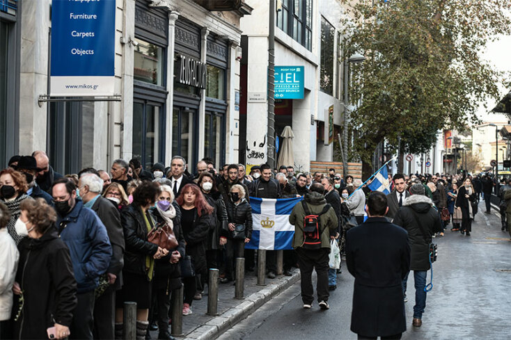 Πλήθος κόσμου συγκεντρώθηκε από τα ξημερώματα της Δευτέρας στην πλατεία Μητροπόλεως για το «ύστατο χαίρε» στον τέως βασιλιά Κωνσταντίνο.