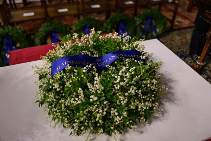 Ιδιαίτερο ήταν το στεφάνι με το οποίο αποχαιρέτησε τον τέως βασιλιά Κωνσταντίνο η Άννα - Μαρία. Ήταν φτιαγμένο από μιγκέ, ή «κρίνα της κοιλάδας», τα ίδια λευκά λουλουδάκια από τα οποία ήταν φτιαγμένη και η νυφική τους ανθοδέσμη.
