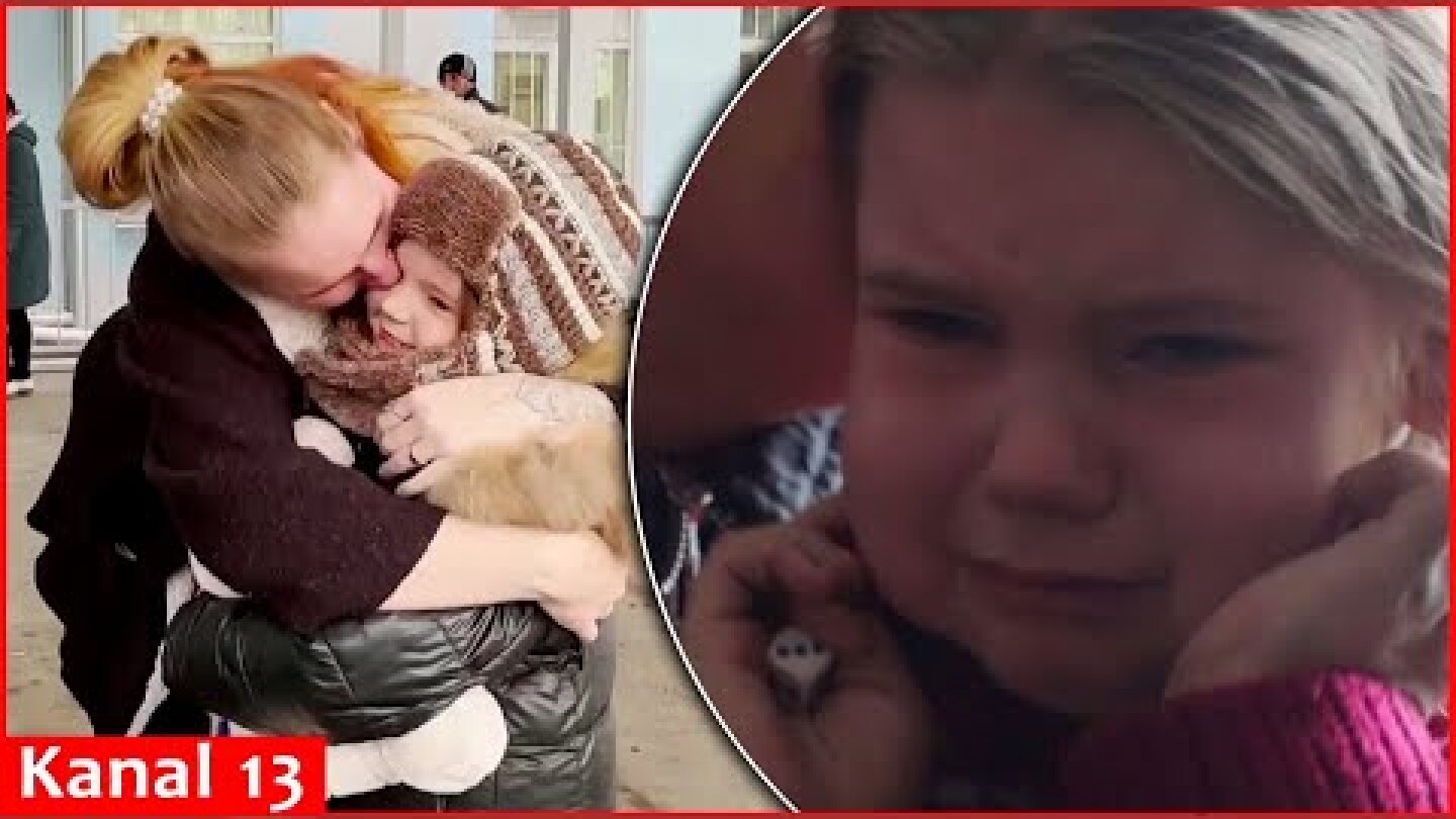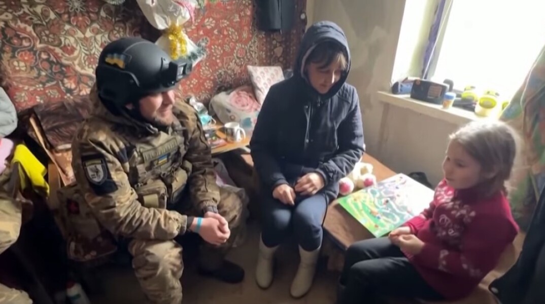 Η μικρή Αρίνα βρέθηκε να ζει με τους παππούδες της σε ένα ερειπωμένο κτίριο διαμερισμάτων στο Μπαχμούτ, που έχει σφυροκοπηθεί από τις ρωσικές δυνάμεις. Αφού περπάτησαν με δυσκολία μέσα στο χιόνι για να φθάσουν στην Αρίνα, ενώ στο βάθος ακούγονταν ήχοι από πυρά πυροβολικού, ο αστυνομικός Πάβλο Ντιατσένκο και δύο συνάδελφοί του οδήγησαν το μικρό κορίτσι στην κοντινή πόλη Σλοβιάνσκ για να επανενωθεί με τη μητέρα της, τη Χαλίνα Ντανιλτσένκο. «Μια οβίδα έσκασε στην αυλή μας!», είπε η Αρίνα, κρατώντας ένα μεγάλο λευκό αρκούδο, στη μητέρα της αφού αγκαλιάστηκαν. «Άκουσα ότι μια οβίδα εξερράγη στην αυλή σας, γι’ αυτό ανησύχησα τόσο πολύ», δήλωσε η 24χρονη Χαλίνα Ντανιλτσένκο, που είναι οκτώ μηνών έγκυος. Η οικογένεια είναι μεταξύ των εκατομμυρίων εκτοπισμένων που έχουν αναγκαστεί να εγκαταλείψουν τις εστίες του μετά τη ρωσική εισβολή στις 24 Φεβρουαρίου πέρυσι.