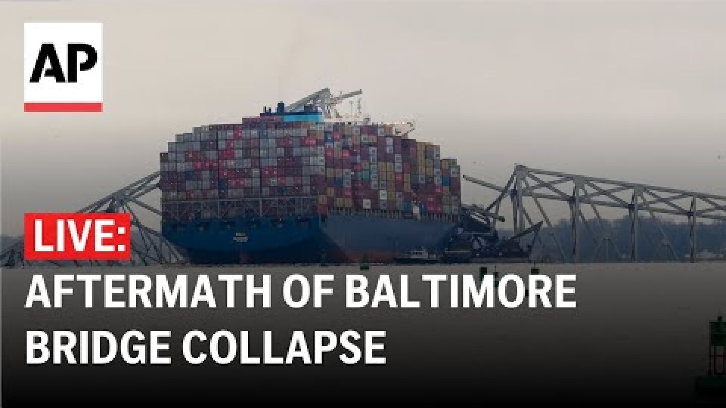 Οι μεταφορές από και προς ένα από τα πιο πολυσύχναστα λιμάνια της χώρας έχουν ανασταλεί, ενώ τα συντρίμμια της γέφυρας κρέμονται πάνω από το φορτηγό πλοίο που έπεσε πάνω της.