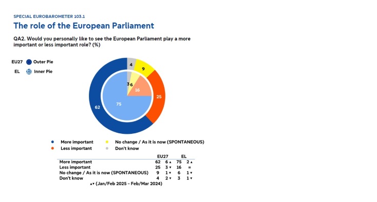 - Το 62% θα ήθελε σημαντικότερο ρόλο για το Κοινοβούλιο - ισχυρή ψήφος εμπιστοσύνης από Ελλάδα (75%) και Κύπρο (94%)