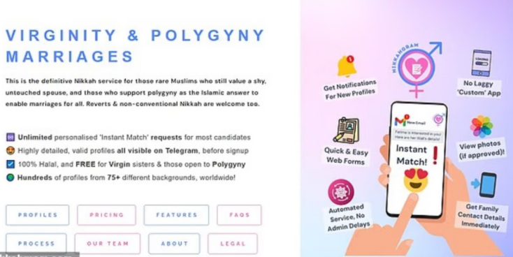 Σφοδρές αντιδράσεις έχει προκαλέσει στη Βρετανία η πλατφόρμα γνωριμιών NikkahGram, η οποία απευθύνεται αποκλειστικά σε μουσουλμάνους άνδρες και προωθεί γάμους με «παρθένες και ντροπαλές γυναίκες», αλλά και την πολυγαμία. Η εταιρεία παρουσιάζει γυναίκες κάτω των 35 ετών ως «ιδανικές πρώτες συζύγους», ενώ απαιτεί από τις εγγεγραμμένες να ορκίζονται στον Αλλάχ για την παρθενία τους, προειδοποιώντας για «σοβαρές συνέπειες» αν ψεύδονται. Παράλληλα, προτείνει στους άνδρες να μην καταγράφουν ισλαμικούς γάμους σε χώρες της Δύσης, όπου η πολυγαμία είναι παράνομη, υποστηρίζοντας ότι οι γυναίκες εκτός Δύσης είναι πιο «παραδοσιακές» και «ανθεκτικές στον φεμινισμό».