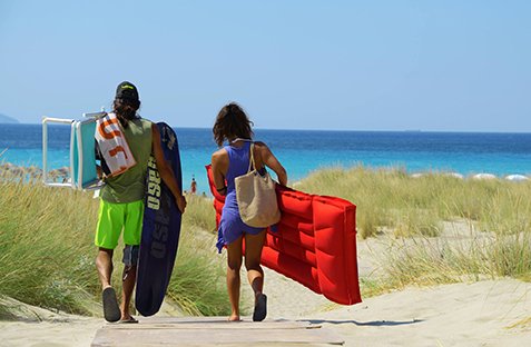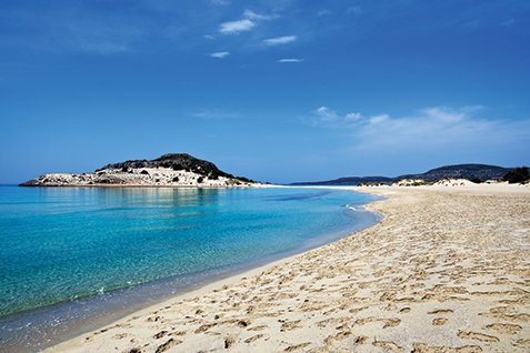 Βέβαια, όταν μου είπαν ότι η παραλία είναι δίπλα δεν φανταζόμουν ότι το έλεγαν κυριολεκτικά. 18 βήματα, για την ακρίβεια. Τόσα χρειάστηκα για να φτάσω από το κάμπινγκ, που είναι η μοναδική τουριστική μονάδα πάνω στην παραλία, στον παράδεισο. Τόσα χρειάστηκα για να ερωτευτώ. Ψιλή λευκή άμμος να απλώνεται δεξιά και αριστερά, για όσο πιάνει το μάτι σου, καλύπτοντας τα πάντα και σχηματίζοντας αμμόλοφους που φτάνουν τα 10 μέτρα και κρύβουν το κάμπινγκ και τα διπλανά ξενοδοχεία, δίνοντάς σου την αίσθηση πως δεν υπάρχει τίποτα άλλο εκεί. Τίποτα άλλο πέρα από την παραλία κι αυτά τα πιο κρυστάλλινα, σμαραγδένια νερά που έχω δει ποτέ μου. Αν έχεις πάει στην παραλία του Σίμου θα βρεις την περιγραφή μου φτωχή, κι αν δεν έχεις πάει θα με πεις γραφική ή υπερβολική. Όμως ισχύουν όλες οι υπερβολές που έχουν γραφτεί για αυτή την παραλία, και όχι, οι φωτογραφίες δεν είναι φωτοσοπιά. Είναι μία από τις πιο όμορφες παραλίες της Μεσογείου και δεν χαρακτηρίστηκε τυχαία προστατευόμενη περιοχή Natura. Κι εγώ που μιλάω πολύ και γκρινιάζω πιο πολύ, για πρώτη φορά, αντικρίζοντας το τοπίο, δεν βρήκα τίποτα να πω. Μόνο χαμογέλασα. Όπως θα κάνεις κι εσύ όταν πας και θα με θυμηθείς...